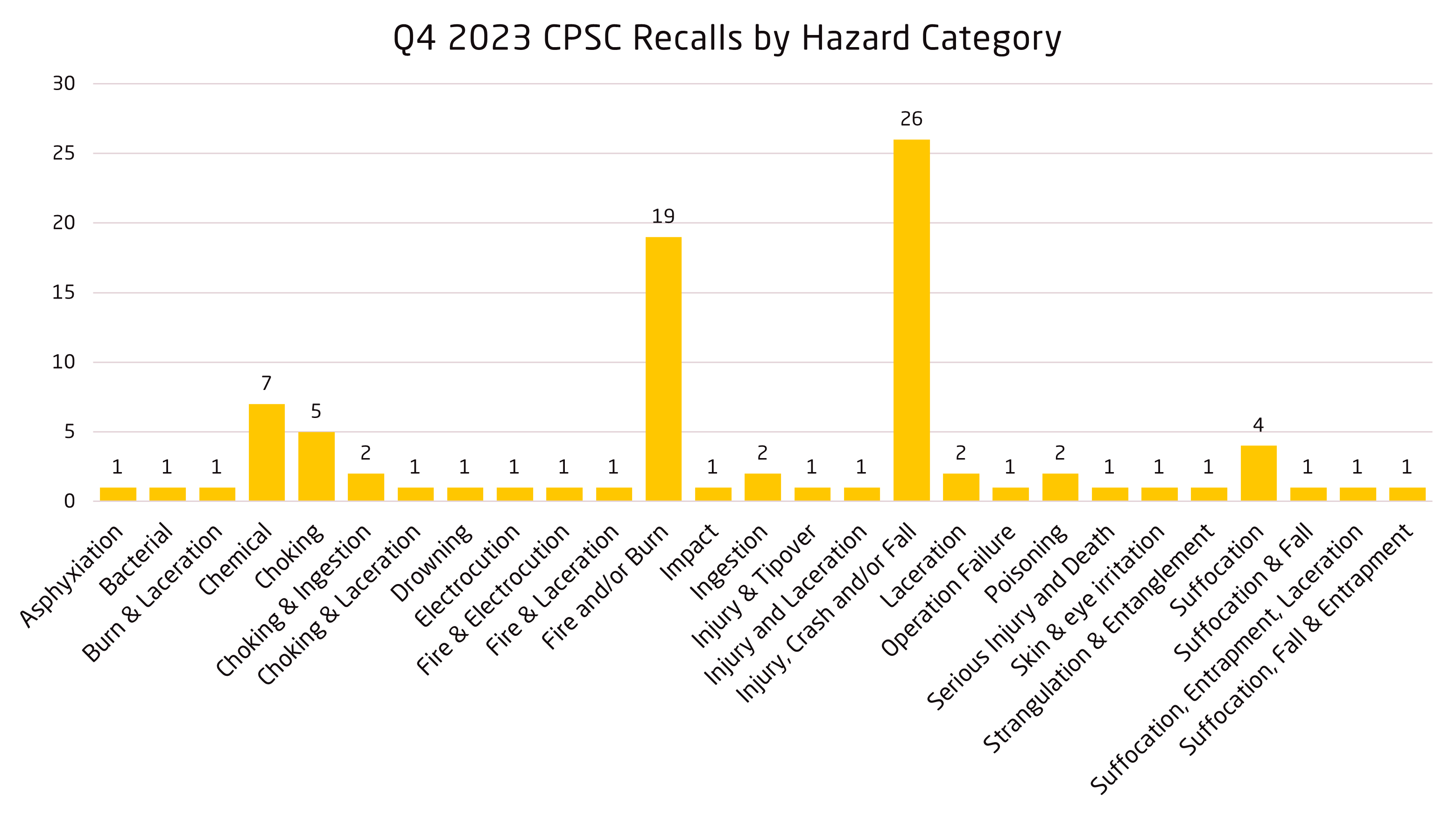 A total of 87 consumer products recall notices were issued by the U.S. Consumer Product Safety Commission (CPSC) from October-December 2023. Notably, 28 recalls from Health Canada were done jointly with the CPSC.