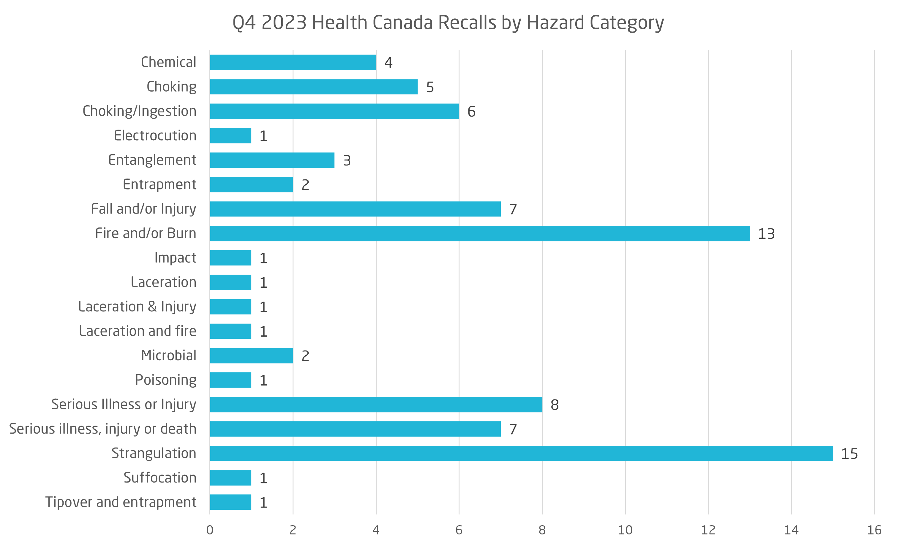 Health Canada reported a total of 80 consumer product recall notices issued in Q4 (October-December, 2023).